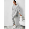 Zacht en comfortabel loungepak in een geribde stof. Het losse design met capuchon en aansluitende broek combineert warmte en stijl, ideaal voor thuis of casual dagen.