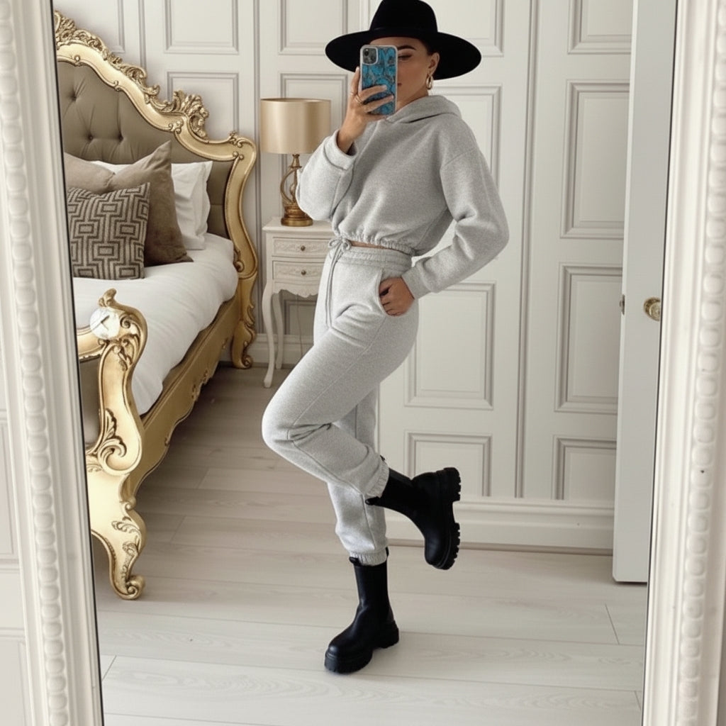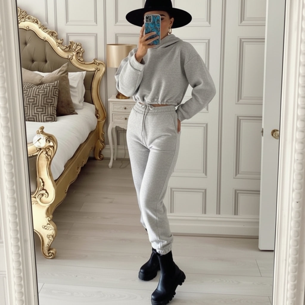 Comfort en stijl in één look dit grijze joggingpak voor dames combineert een moderne snit met ultiem draagcomfort. Perfect voor thuis, boodschappen of een casual dagje uit.