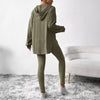 Comfortabele en trendy gebreide set bestaande uit een lange trui met capuchon en een aansluitende broek. Ideaal voor thuis of casual buiten, dankzij de zachte, rekbare stof en moderne snit.
