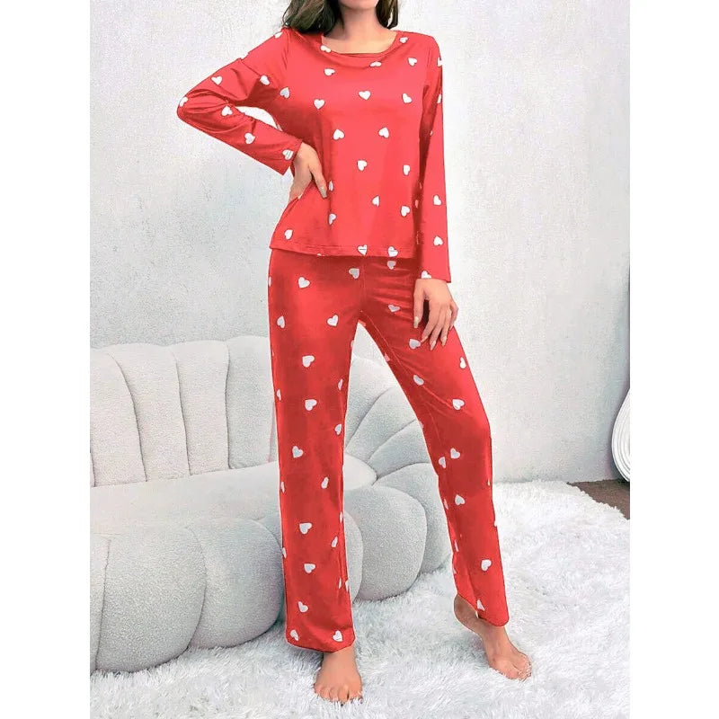 Deze comfortabele pyjama set met hartjes print brengt een vleugje speelsheid in je avondroutine. De zachte en rekbare stof zorgt voor een aangename nachtrust en een relaxte pasvorm, ideaal om in te loungen of te slapen.