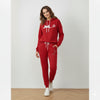Dit rood dames joggingpak met kattenprint combineert comfort met een speelse uitstraling. De hoodie met schattige kat-opdruk en verstelbare trekkoorden past perfect bij de bijpassende broek met elastische taille en zakken. Een ideale outfit voor ontspanning thuis of een casual dagje uit.