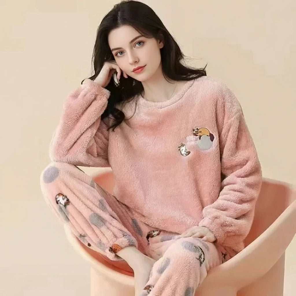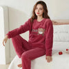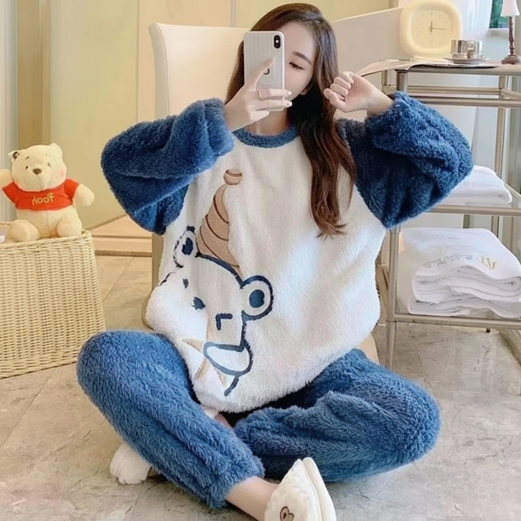 Deze teddy pyjama set is perfect voor koude dagen en cosy avonden. De zachte fleece stof houdt je heerlijk warm, terwijl het schattige berenmotief zorgt voor een speelse en charmante look. Ideaal als huispak of comfortabele nachtkleding.