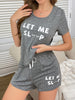 Comfortabele en speelse pyjamaset met de tekst “LET ME SLEEP”, ideaal voor ontspannen dagen of nachten vol rust.