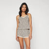 Luchtige tweedelige set met luipaardprint en kanten afwerking. Ideaal voor warme zomernachten of ontspannen dagen thuis.